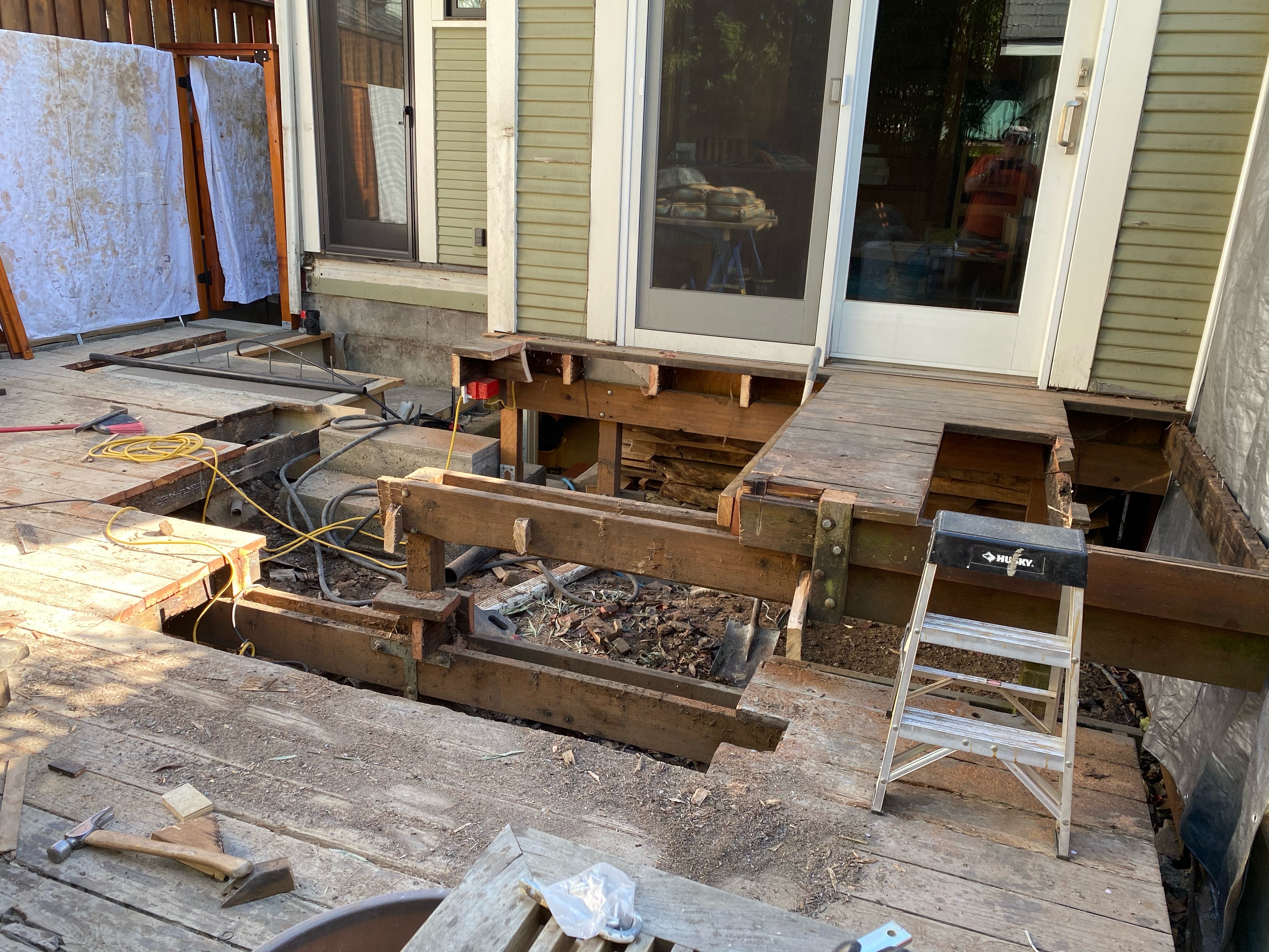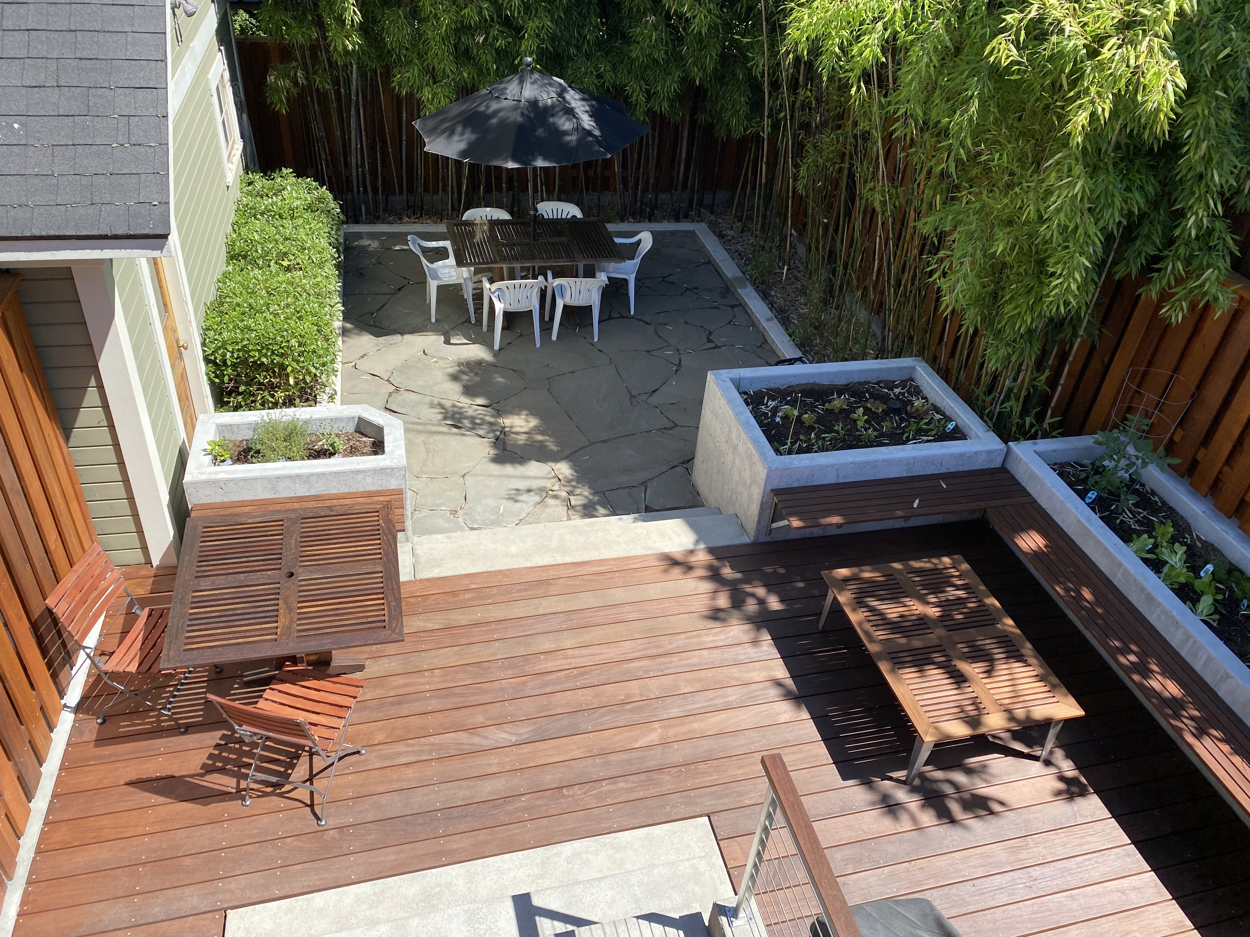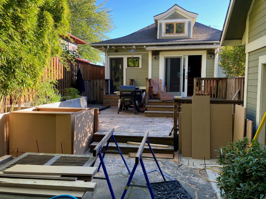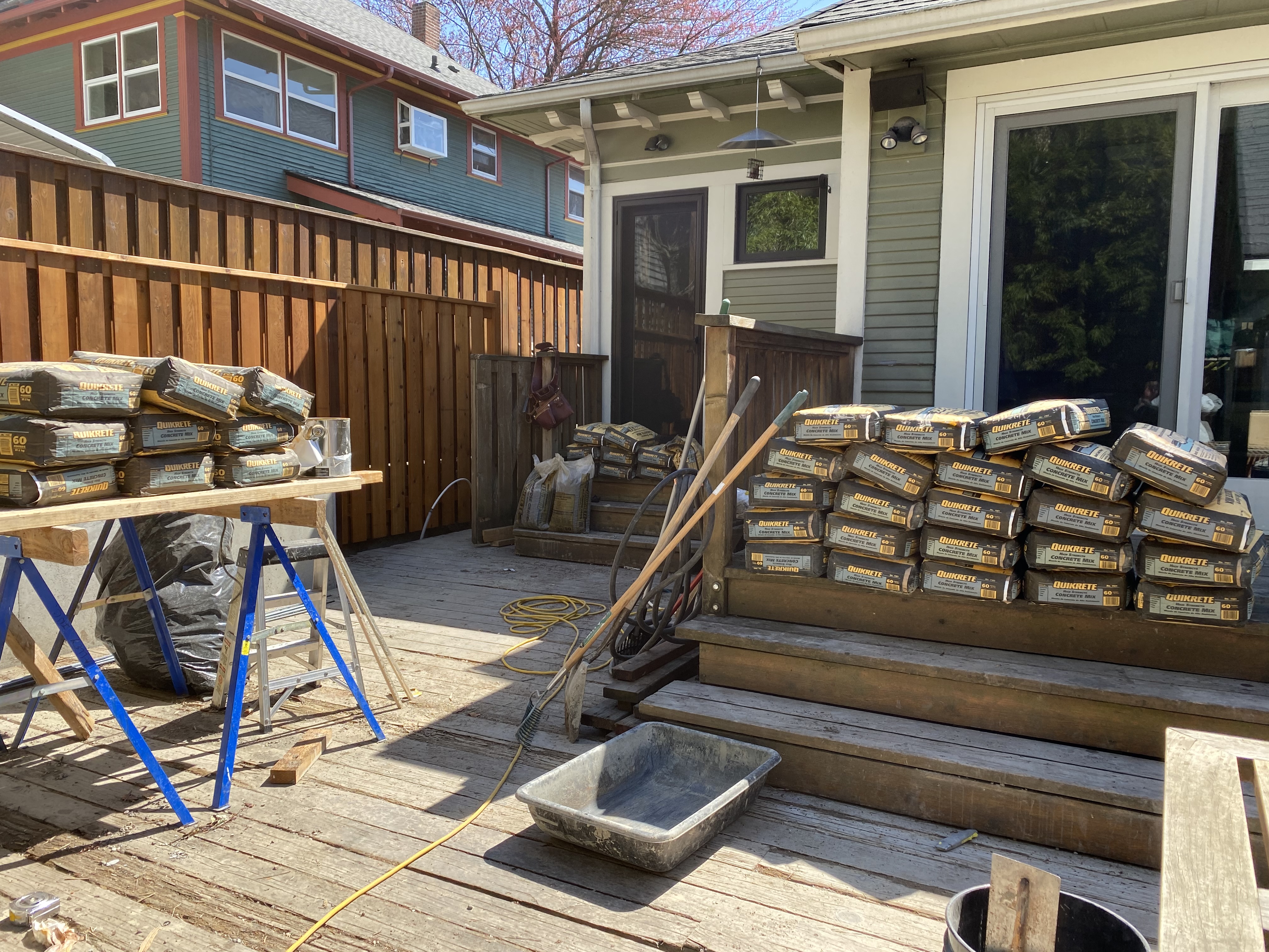 Finished Deck from Kitchen – 2021Cutting Deck for a New Concrete PlanterThe PlanFinished Planter Planter Forms with ConcreteOld Driveway and FenceForming up Base for FenceNew Steps to DeckReady to Mix ConcretePouring FootingsBack Deck in Progress – 2021Concrete Stairs in FormNew Concrete Stairs and FormDeck Framing with Beginnings of Custom HandrailsDeck FramingFinished Deck from Back Gate – 2021Making Stainless Steel BracketsStainless Steel Brackets – Almost DoneFinished Deck With Benches