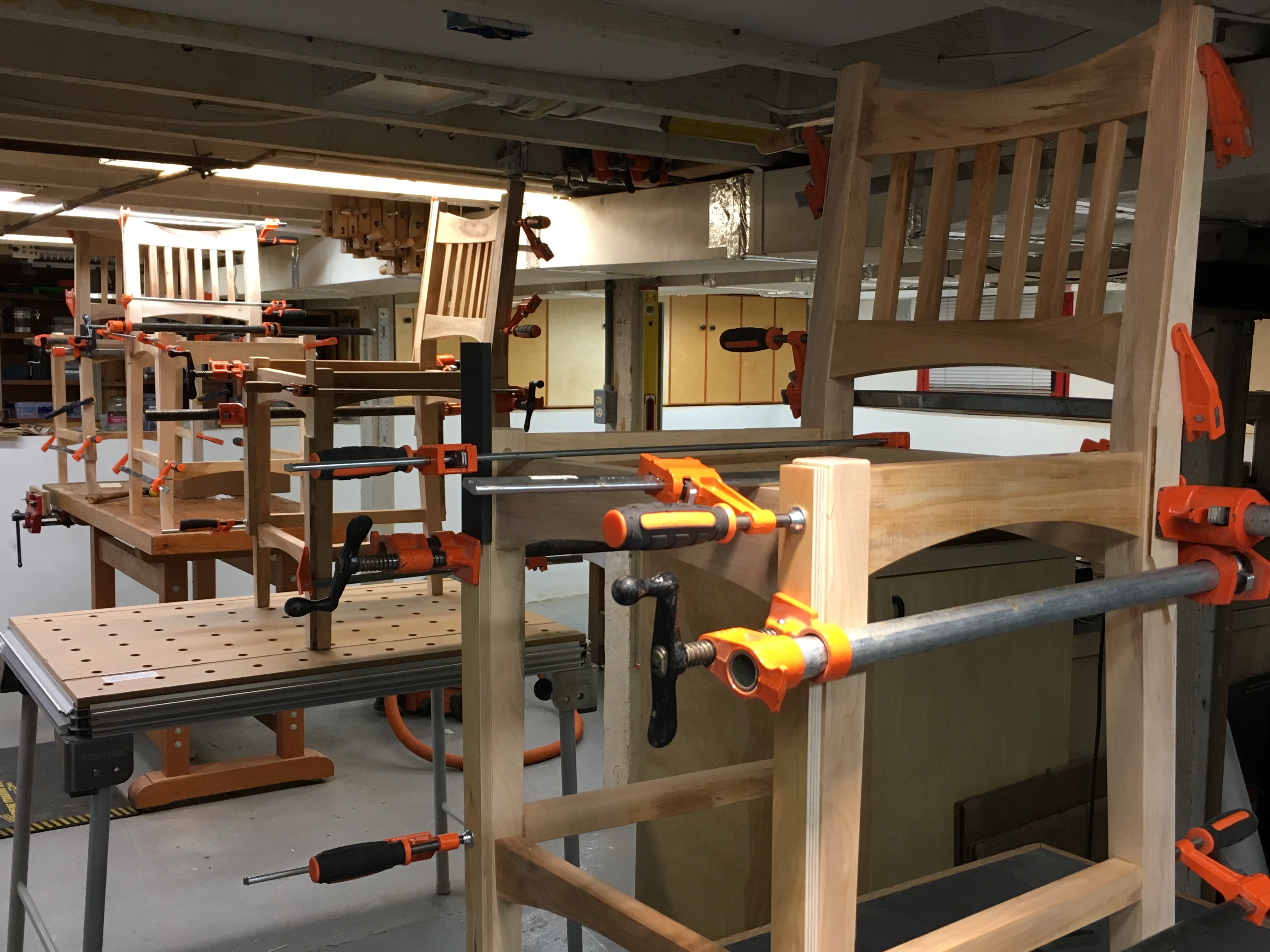 Making the Square PartsLots and Lots of PartsGluing up the ChairsGlued Up StoolsStools in Place